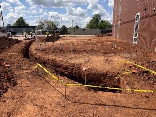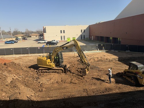 •Additional concrete work is underway to connect plumbing from the existing building to the new south addition