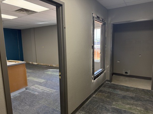 oA temporary construction wall with a door has been installed in the preschool area