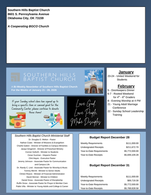 CHURCH NEWSLETTER