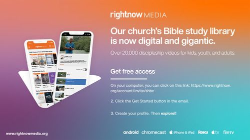 RightNow Media has something for everyone in your family! We hope that you will take advantage of this great tool to help disciple you and your family. If you have any questions, you can always reach out to Clint Hayes at clinth@myshbc.com.